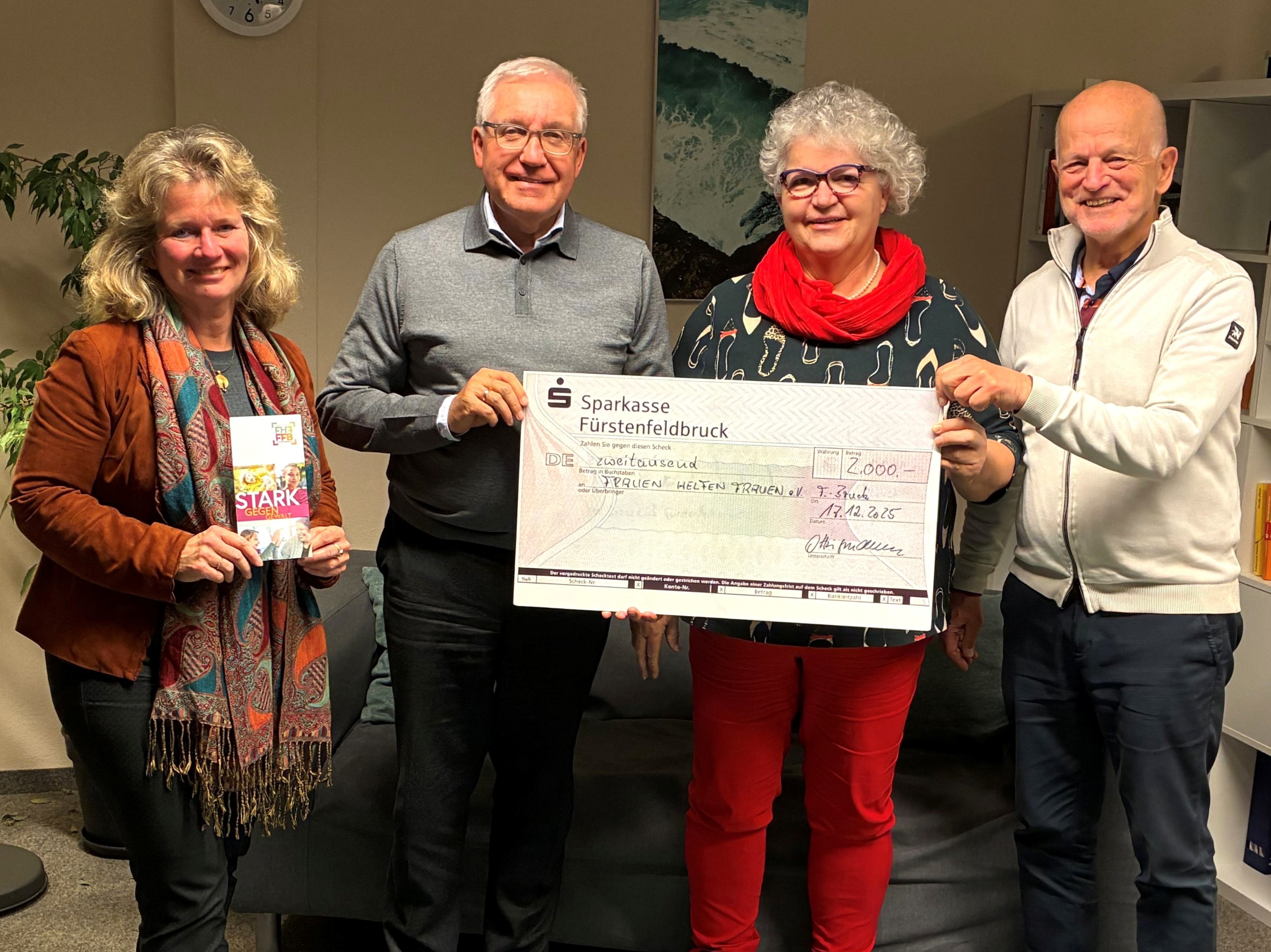 v.l.: Sandra Winter (Vorständin "Frauen helfen Frauen e.V.), Olaf Husmann (Vorstand Lions Club FFB), Annemarie Fischer (Vorständin Frauen helfen Frauen e.V.) und Erich Raff (Vorstand Lions Club FFB).