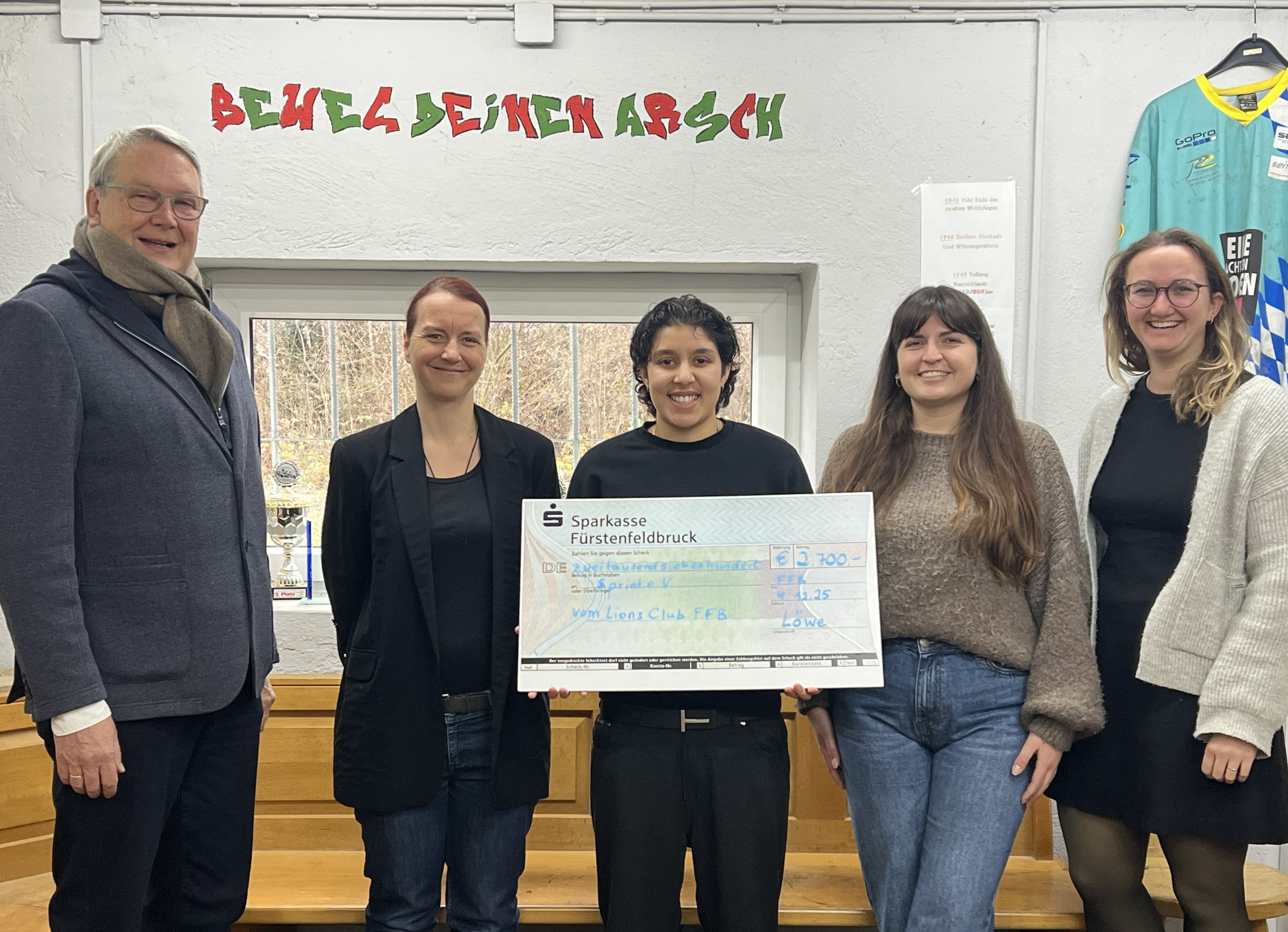 Der Lions Club unterstützt soziale Projekte im Landkreis Fürstenfeldbruck. Es ist dem Lions Club ein Anliegen, auch in diesem Jahr die Kosten für den Förderunterricht junger Menschen zu übernehmen, damit diese möglichst den „Quali“ bestehen und eine Lehrstelle finden. Vor kurzem hatten Vertreter des Clubs die Möglichkeit, die „Starthilfe“ des Sprint e.V. in Überacker zu besuchen. Dort wurde ihnen von den Mitarbeiterinnen das Konzept erläutert und die Räumlichkeiten gezeigt, während die anwesenden jungen Menschen die Besucher kennenlernen konnten. Den Abschluss bildete die symbolische Übergabe eines Schecks in Höhe von 2.700 €. Damit wird der Förderunterricht der „Starthilfe“ für ein Schuljahr sichergestellt.